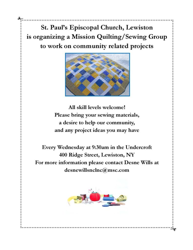 St. Paul’s is organizing a Mission Quilting/Sewing Group to work on community-related projects!