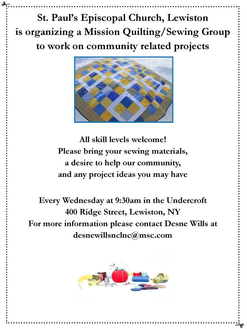 St. Paul’s is organizing a Mission Quilting/Sewing Group to work on community-related projects!